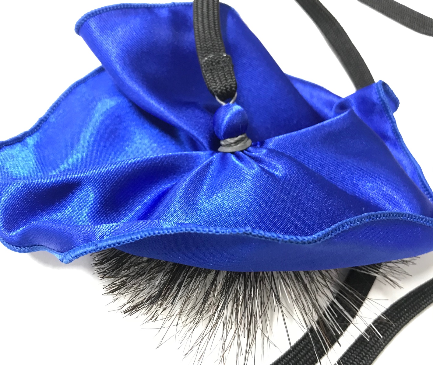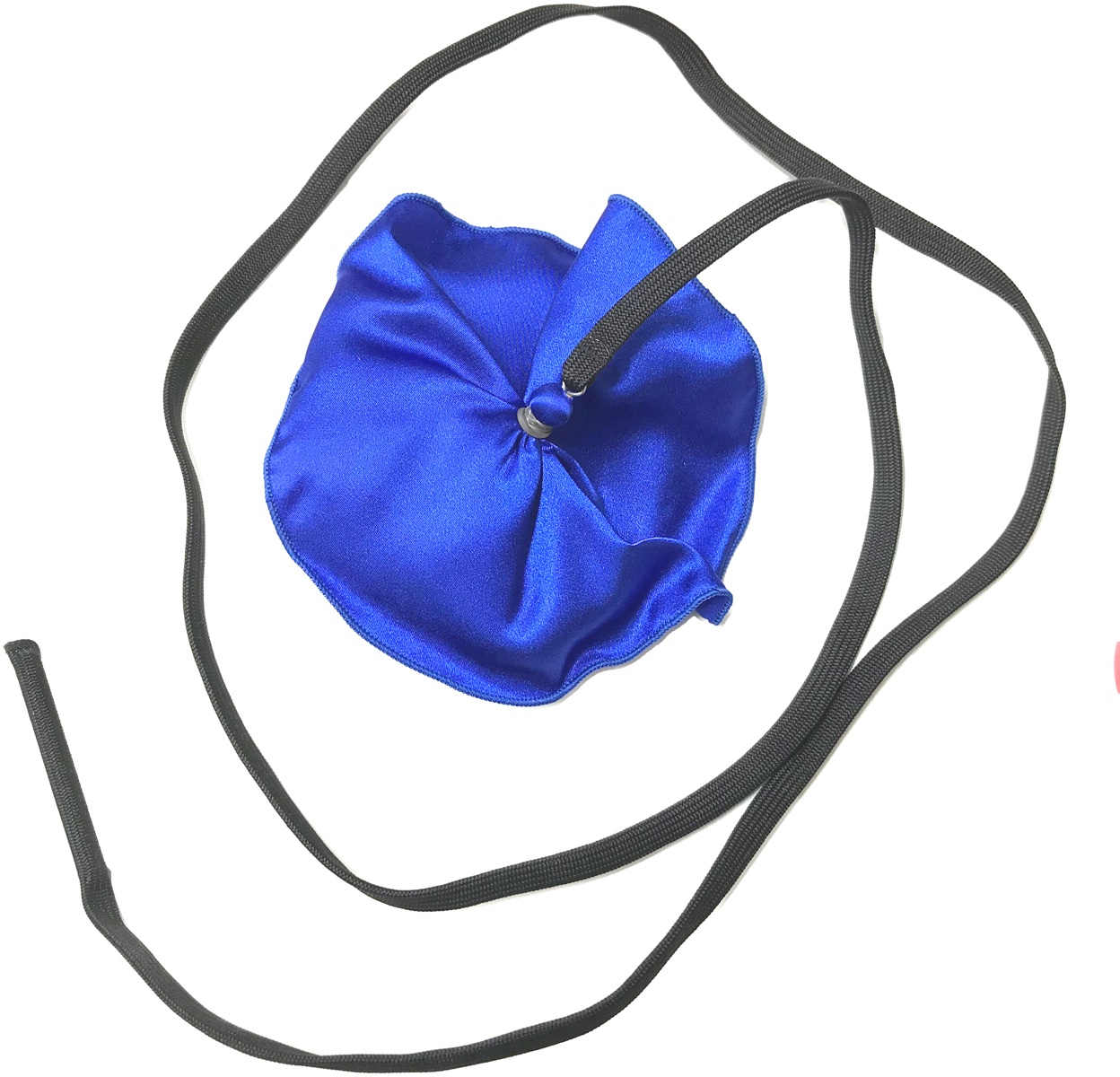 布の角におもりの付いたヒモがついており、そのおもりを太い方側に入れて逆側からおもりをひっぱって使用します。
