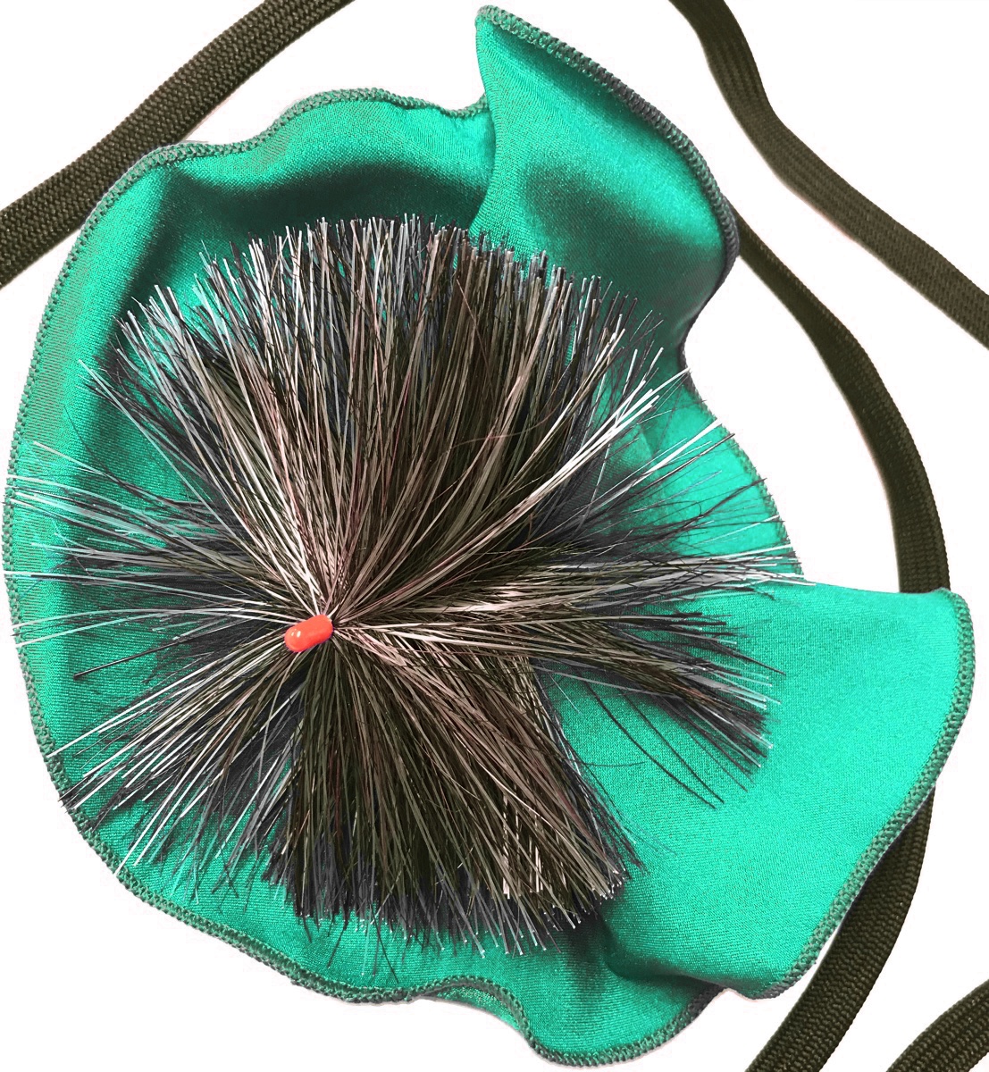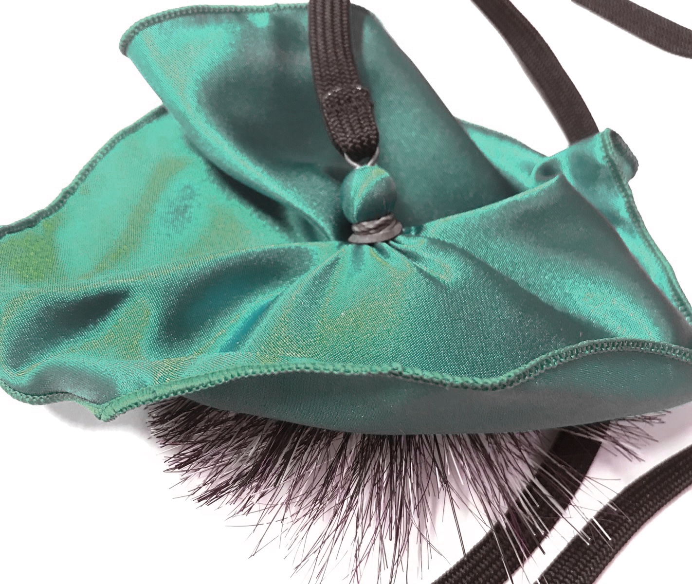 布の角におもりの付いたヒモがついており、そのおもりを太い方側に入れて逆側からおもりをひっぱって使用します。