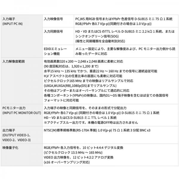 ◆ほとんどの入力解像度に対してリアルサンプルです(最大映像サンプル周波数165Msps)。