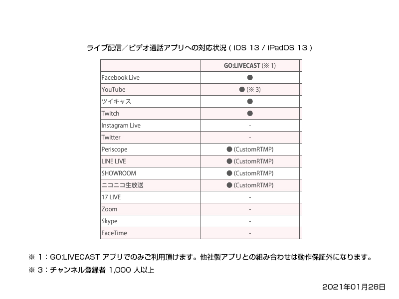 ● TwitCasting(ツイキャス)やYouTube*などのプラットフォームに対応。
