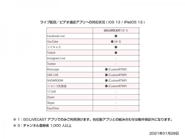 ● TwitCasting(ツイキャス)やYouTube*などのプラットフォームに対応。