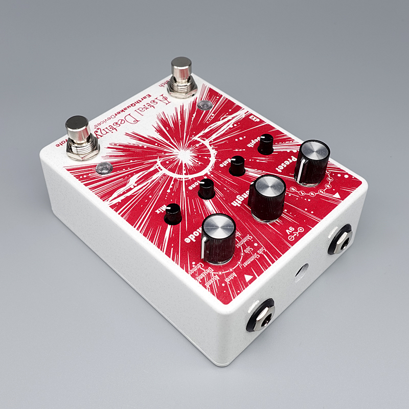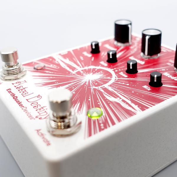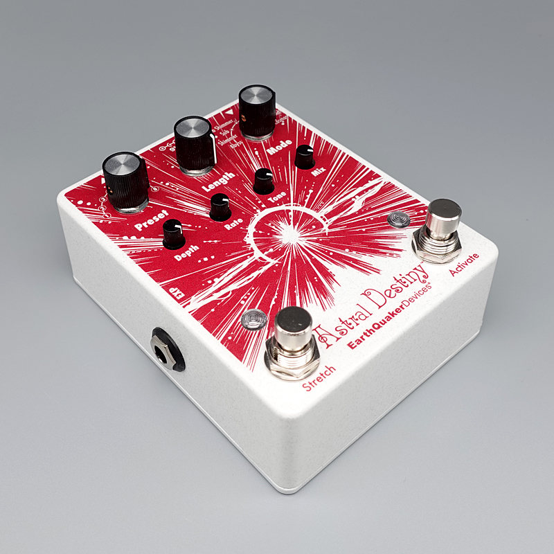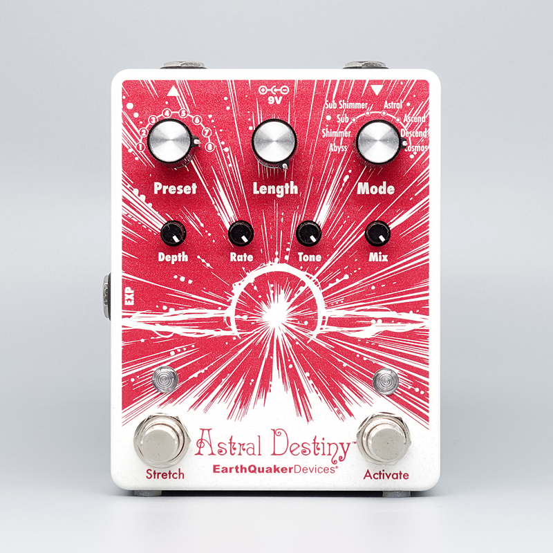 アストラルデスティニーはモジュレーションを加えられるオクターブを残響音に散りばめる、コンパクトながらも強力なリバーブです。8つのリバーブモード搭載で、自由にエディットできるプリセットを最大8個まで保存可能。外部エクスプレッションペダル機能のアサインや、エフェクターをオフにした際に残響音を残せるトレイルモード、そして残響音の長さを2倍に伸ばせるStretch機能も搭載しており、その最中にピッチベンドを加える事もできます。