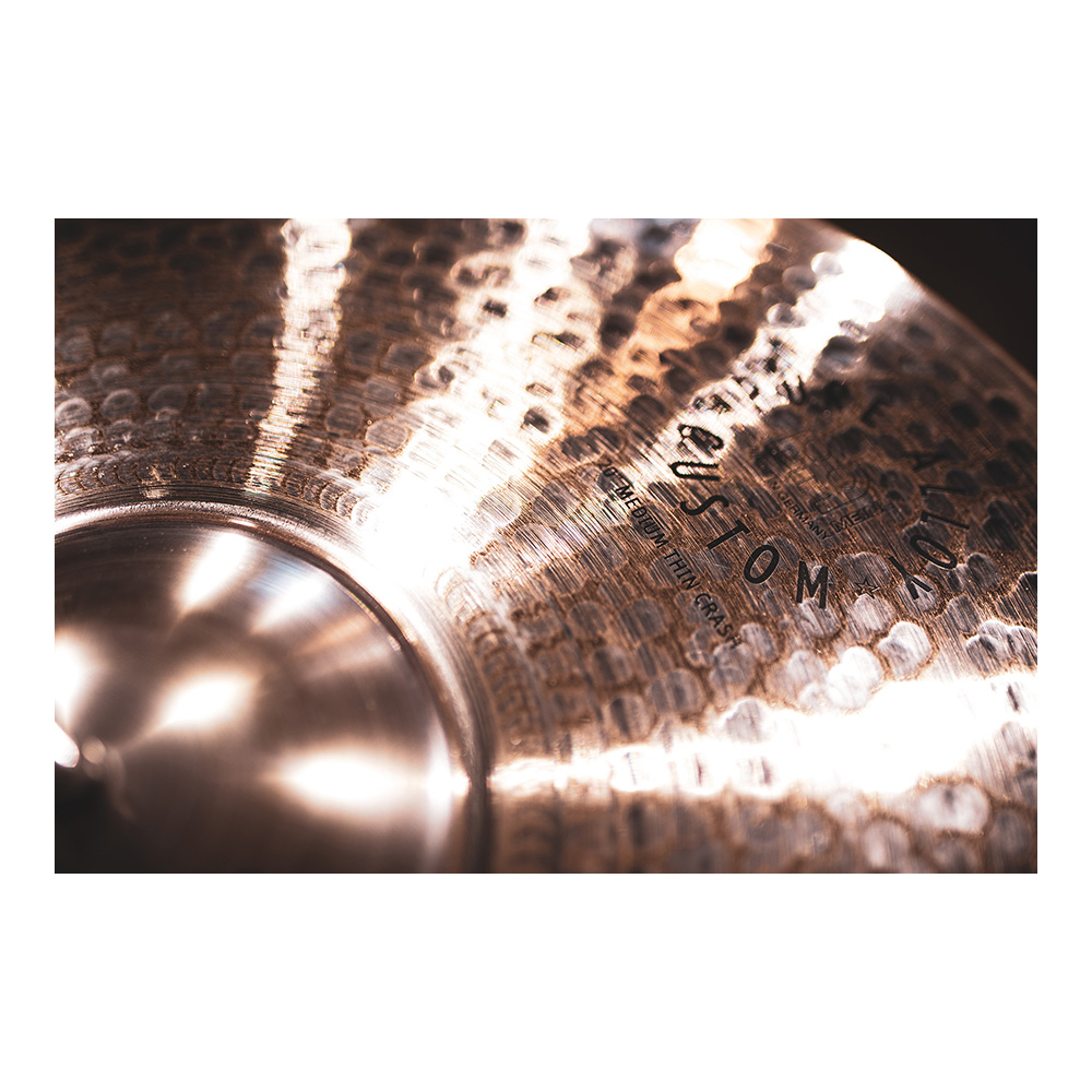 【PURE ALLOY CUSTOM シリーズ】 ピュアアロイの特徴である明るくクリアなサステインを保持しながら、暖かみのあるボディと素早いディケイで、わずかにソフトなアタックを生み出します。 ドイツでピュアアロイ・ブロンズからハンマリングで成形されます。 このシンバルを際立たせるため、カスタムスモークブロンズと呼ばれる新しいフィニッシュを表面に施し、裏面は磨き上げたブリリアント・フィニッシュしています。ピュアアロイ・ブロンズは、どのドラムキットにもユニークで美しい追加シンバルになるでしょう。スモークブロンズトップとブリリアントボトムの見事な組み合わせです。