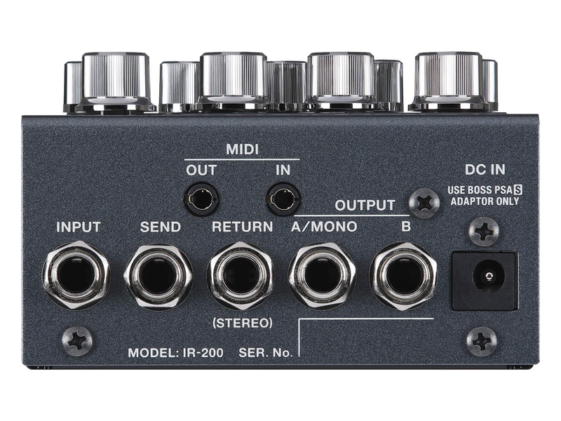 IR-200は、クラシックな真空管アンプを再現したトーンからBOSSのMDP技術を採用したハイ・エンドなオリジナル・アンプまで、豊富なプリアンプを搭載し、内蔵の多彩なキャビネットIR(インパルス・レスポンス)と組み合わせることで、ダイナミックでレスポンスに優れた最高のアンプ・サウンドを実現します。