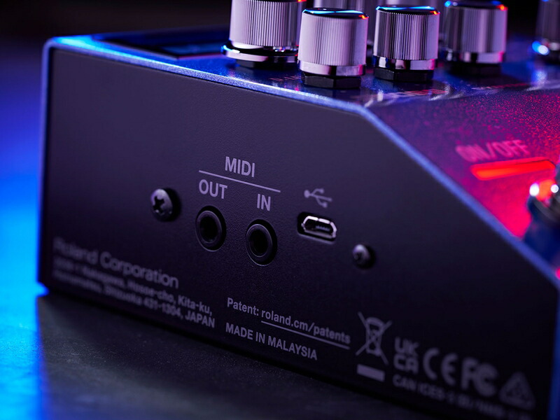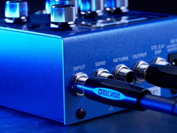 シチュエーションに応じて、SY-200は多彩なセットアップを実現します。他のペダルとの直列接続だけでなく、SEND/RETURN端子を活用することで、 SY-200のシンセ・サウンドと他のエフェクターのサウンドをブレンドして出力することが可能です。 例えば、SEND/RETURNのループ内に歪みペダルを配置し、ドライブ・サウンドとシンセ・サウンドをブレンドして出力、その後にモジュレーションやディレイ、 リバーブをかけるといったルーティングの構築もできます。また、SEND端子はダイレクト・アウトとしても使用でき、ダイレクトとシンセ・サウンドを別々に出力することも可能です。