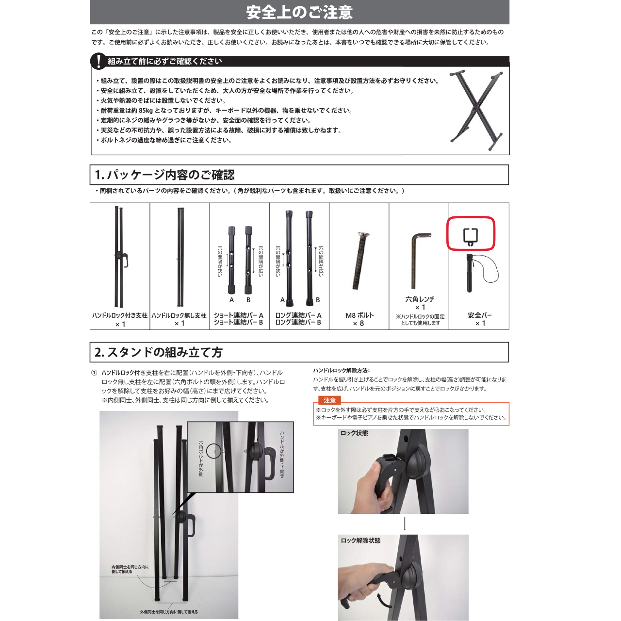 無段階調整ハンドルロック&セーフティー機能付き組み立て式 X字型キーボードスタンド