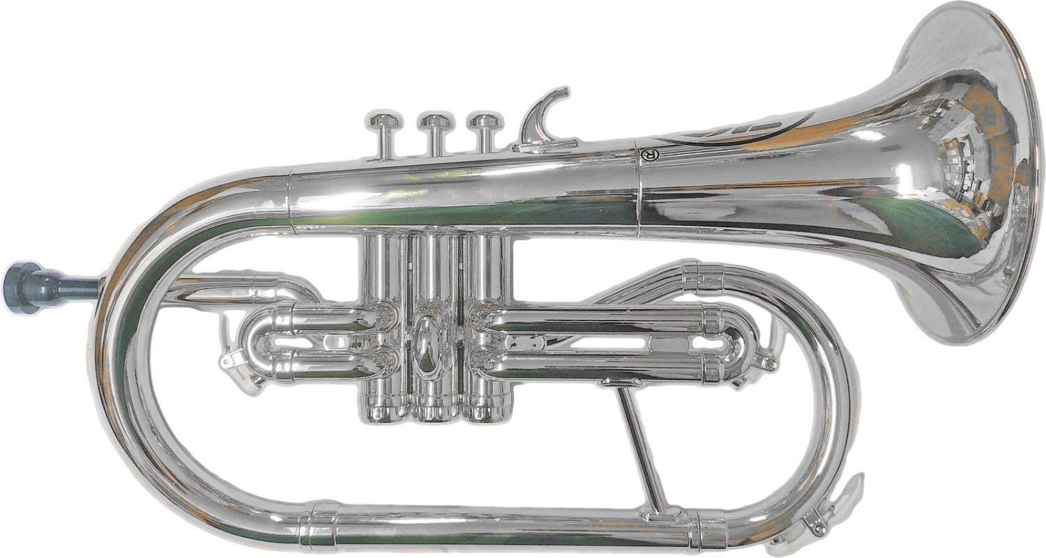 コルネットはトランペットよりも柔らかな音色で、コルネットよりも円錐部分が多く、口径も大きいことからより太く柔らかく、深みに富んだ音色が魅力のフリューゲルホルン。 ZO Flugel horn silver FL-09 ゼットオー フリューゲルホルン FL09 シルバー