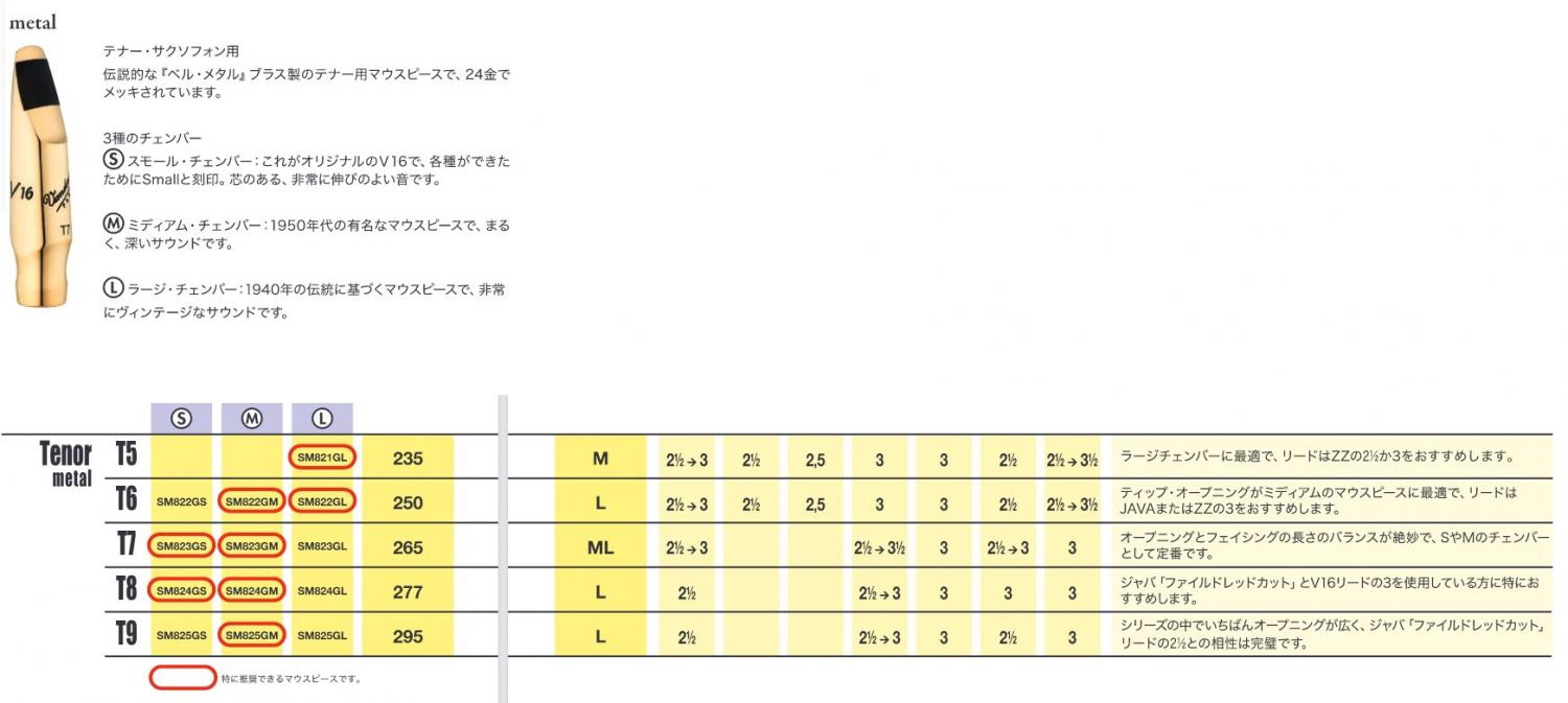 ・V16...ジャズの新たなスタンダード。50年代の有名なアメリカン・アルトサクソフォンマウスピースの伝統を、ジャズ用エボナイト・マウスピースで実現しました。テナーサックス一部のティップオープニングに大きく豊かでよりダークなサウンドが得られるようLチェンバーが登場。