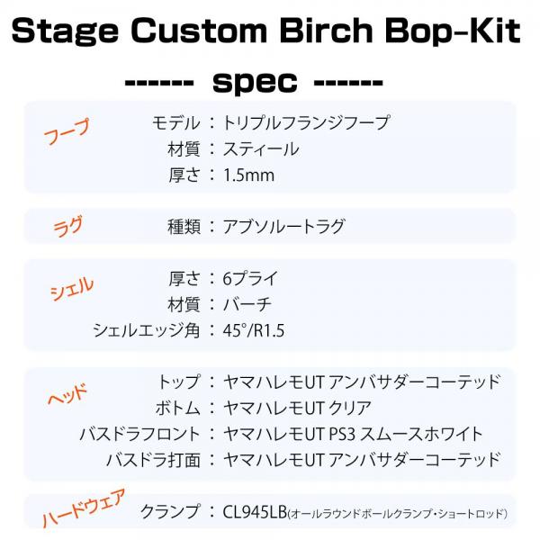 【セット内容】バスドラム:18”×15” フロアタム:14”×13” タムタム:12”×8”(口径x深さ) タムクランプ:CL945LB(オールラウンドボールクランプ・ショートロッド)