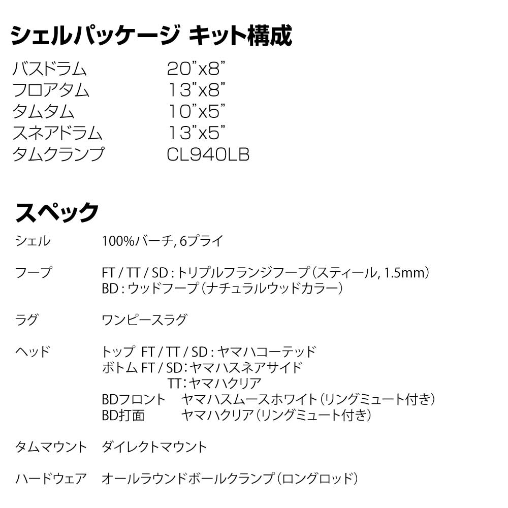 ヤマハドラムの代名詞とも言えるバーチシェル100%を使用したステージカスタムバーチのコンパクトキット。