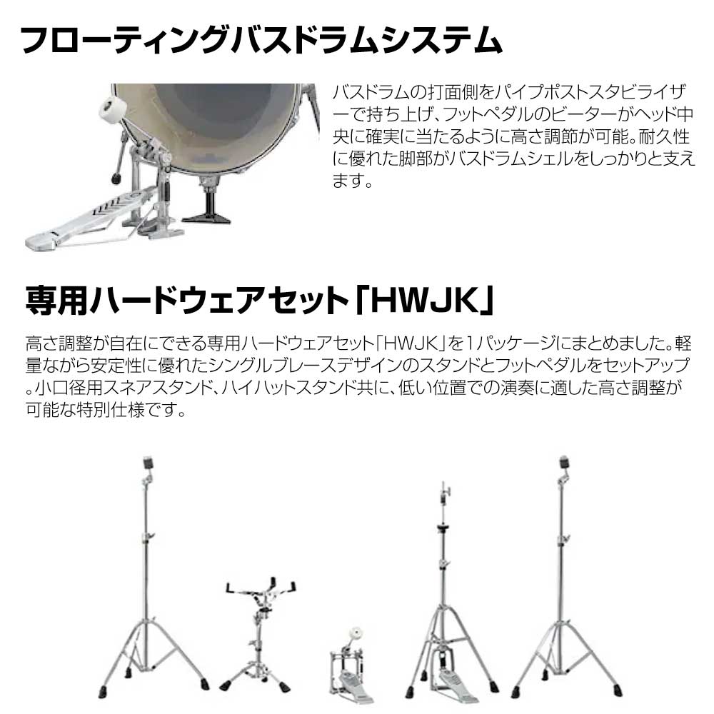 アイディアを多数盛り込み、シェル材、ドラムセット構成等、こだわりを凝縮させたコンパクトドラムとハードウェアのセット!