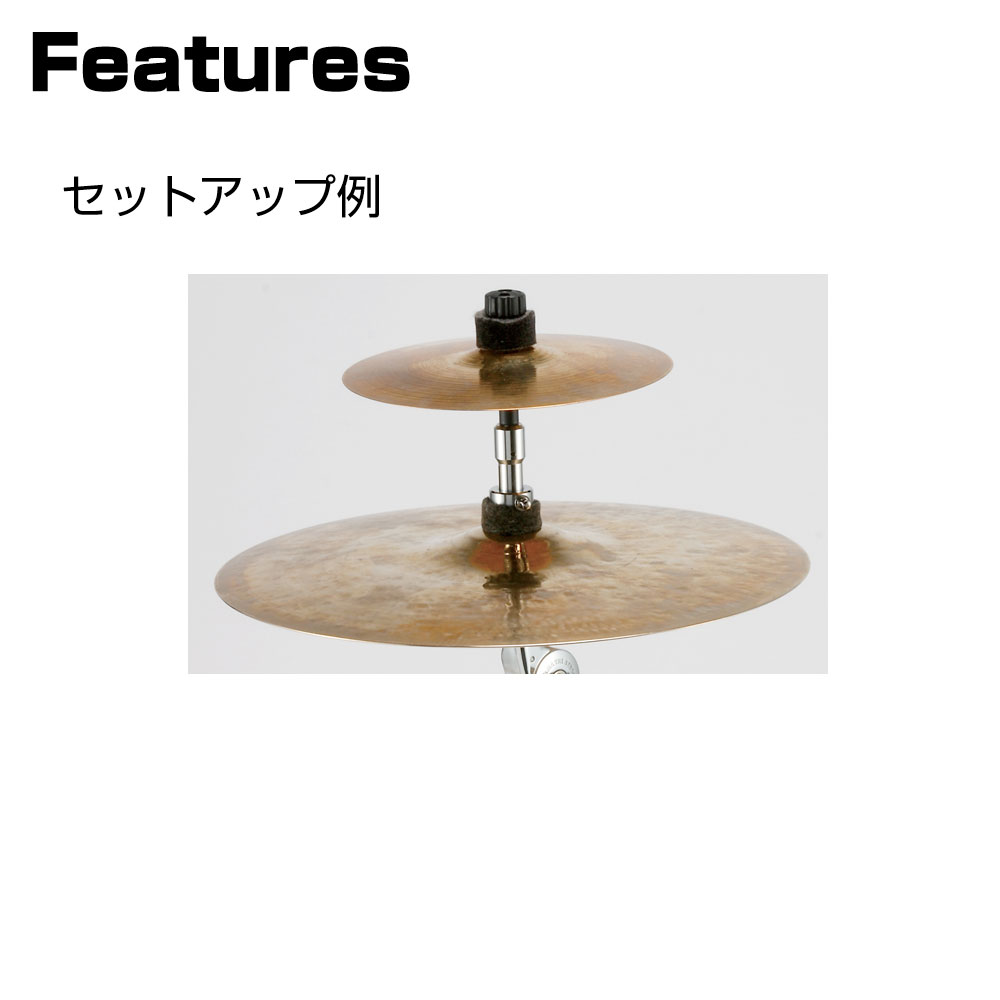 8mm ネジのシンバルロッドを持つスタンドやホルダーに、小径エフェクト ・ シンバル等を同軸上にセットアップ出来るアタッチメント。