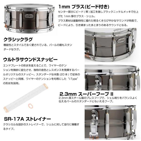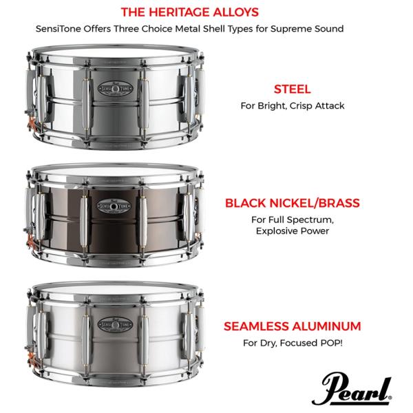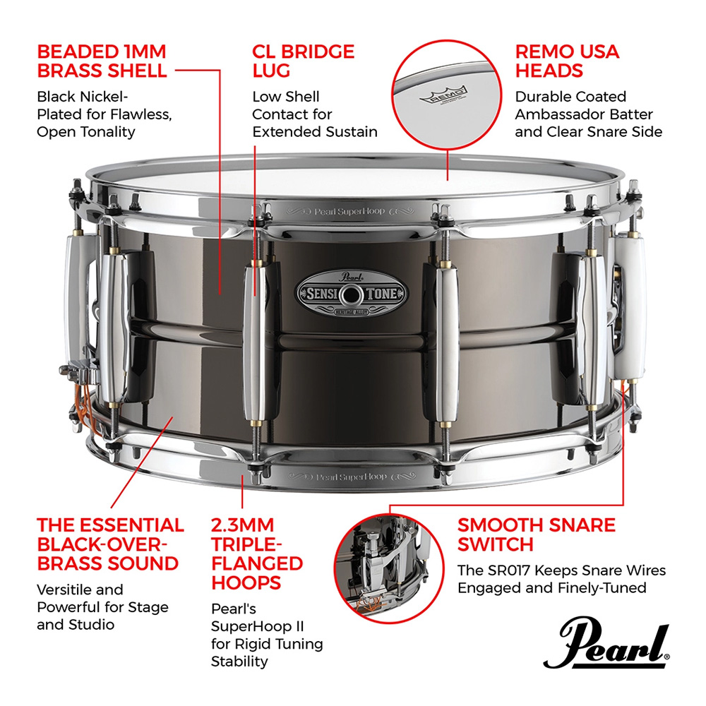 Pearl パール Sensitone Heritage Alloy Black/Brass STH1465BR 【 ドラム スネア センシトーン 】プロフェッショナルドラマーのパフォーマンスで培ったオリジナルSensiToneシリーズのノウハウをベースとしたHeritage Alloyブラックニッケルメッキで仕上げた1mm厚のブラス・シェル。