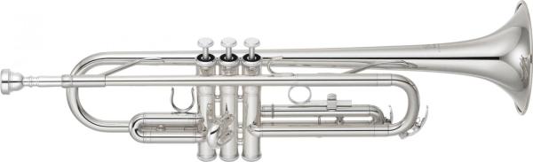 銀メッキとしてはヤマハで一番安いトランペット。イエローブラス素材に銀メッキ素材。塗装の違いによってゴールド(ラッカー塗装)よりも少し高い値段になります。銀メッキは少し抵抗感がありますが落ち着いた音色で表現力の幅が広がります。吹奏楽ではバランスを取るため銀メッキで揃えるなどもあります。トランペットは形状がシンプルですので、価格は1万円以下から御購入いただけますが、当然高いものにはそれなりの理由があります。別ページに詳しく解説していますので参考にして下さい。