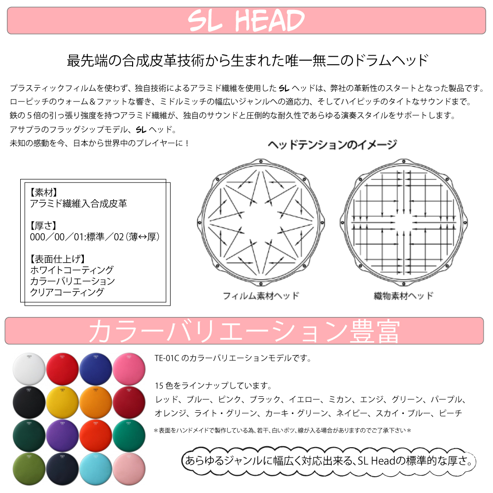 aspr アサプラ SL HEAD TE-01C14 イエロー 14インチ用最先端の合成皮革技術から生まれた唯一無二のドラムヘッド