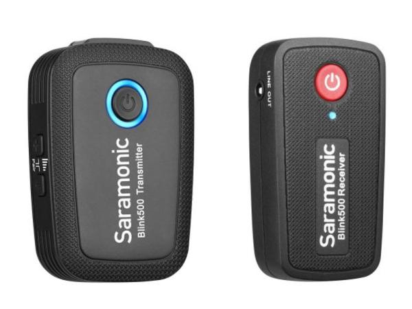 Saramonic Blink500システムの送信機と受信機は、1回の充電で約6時間の稼働。