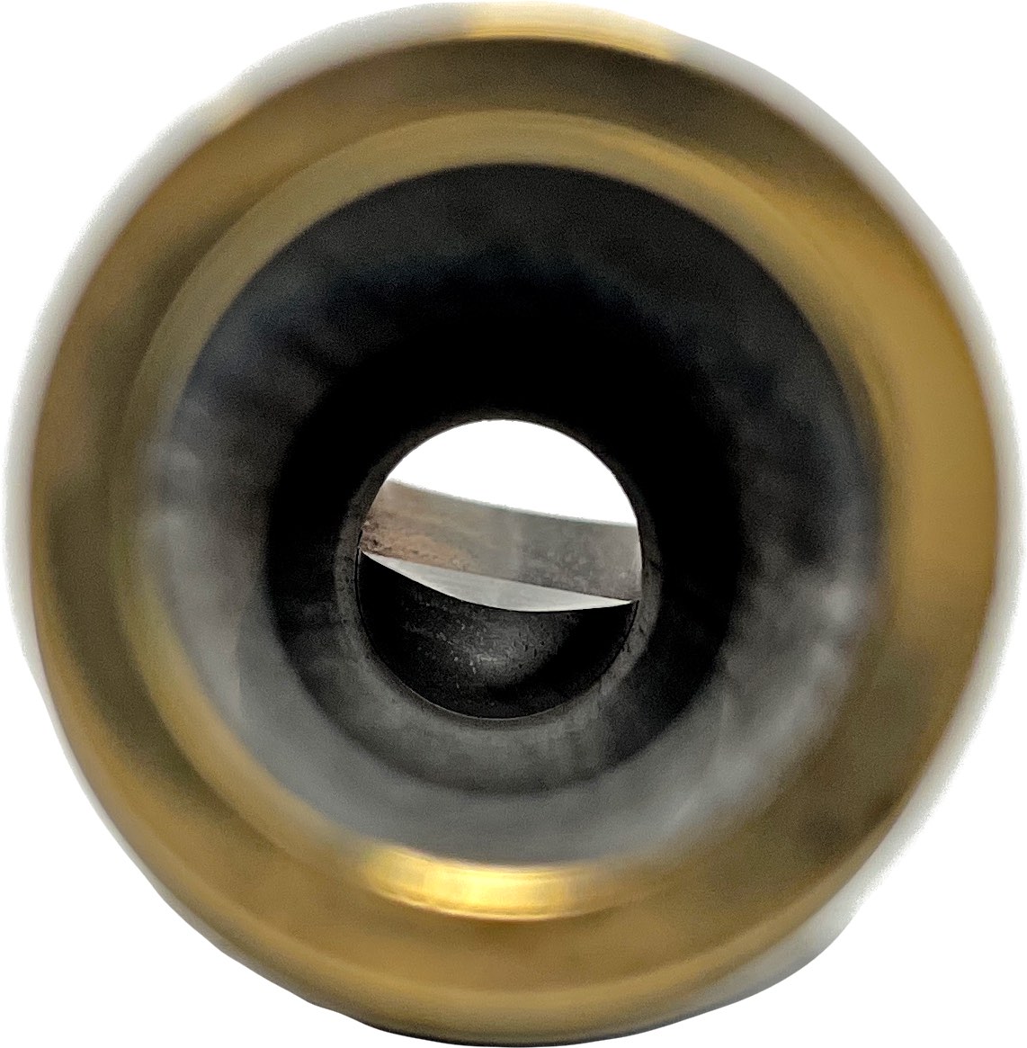 ●バッフルの形状 ティップオープニングからチェンバーまでの面を指します。スタッフが目視で確認したところ形状はバレット型に近い形状です。また通常のバレット型に加えてもう1段階段差がついています。 形状は大きく分けて4種類です。先端からスロートに向かって、直線の傾斜を持つ「ストレート型」、緩やかな放物線を描く「ロールオーバー型」、段差をつけた「ステップ型」「バレット型」があります。