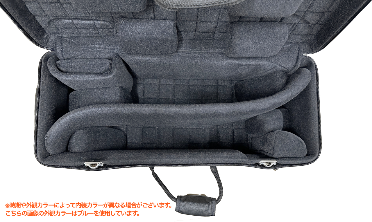 プロとして活躍される多くの管楽器奏者の方々にもご愛用が多い、MBケースはケースとしてはちょっと高めの高級ケースですね。ファイバー製セミハードケースで、その頑丈さと品質の高さに定評があります。楽器の為に研究された緩衝材で管体や細かな部分の凹み・曲がりを防ぎます。クッションを適切に配置することで楽器をしっかりと固定させて収納することができます。