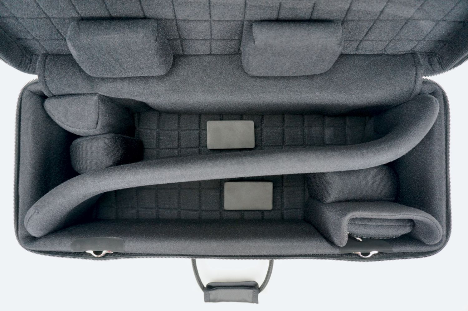プロとして活躍される多くの管楽器奏者の方々にもご愛用が多い、MBケースはケースとしてはちょっと高めの高級ケースですね。ファイバー製セミハードケースで、その頑丈さと品質の高さに定評があります。楽器の為に研究された緩衝材で管体や細かな部分の凹み・曲がりを防ぎます。クッションを適切に配置することで楽器をしっかりと固定させて収納することができます。