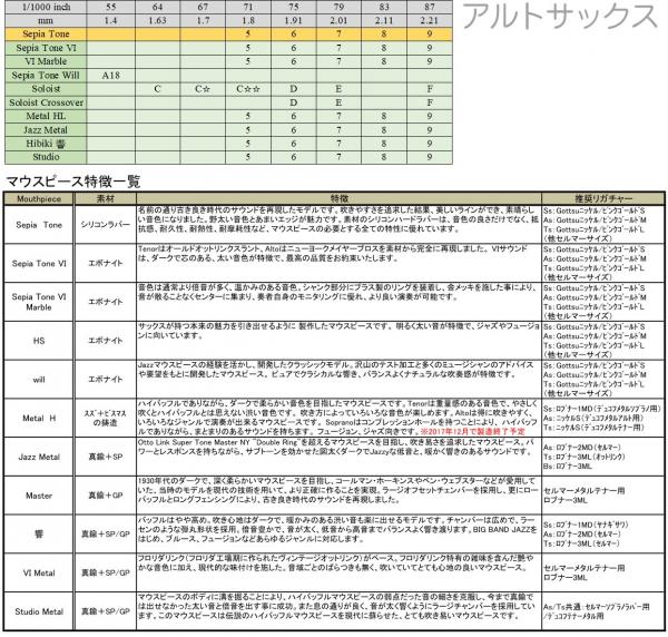 日本製のマウスピースですので海外製のメジャーブランドより知名度が低いですが知る人ぞ知る、ここ最近じわじわ人気が出てきているブランドのように思います。