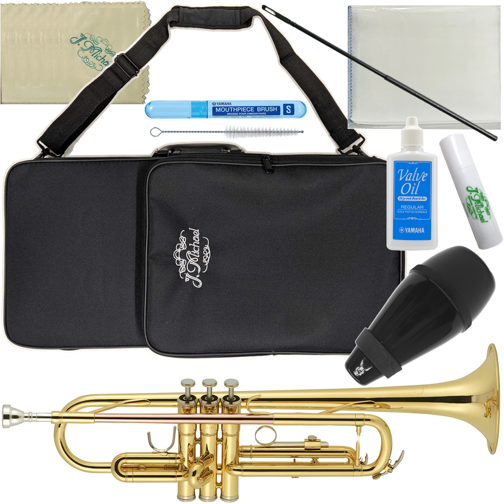 レッドブラス製のマウスパイプは柔らかく、落ち着きのある音色が特徴です。吹きやすくとてもバランスの良い1本。支柱1本で程よい抵抗感がありこちらも初心者には安心です。トランペットは比較的楽に鳴らせる楽器と言われておりますが大きいため、YAMAHAのサイレントブラスやミュートなどを付けて頂くと多少弱音され、練習もしやすくなると思います。その派手(?)な音色から楽曲の主旋律を担当することも多い花形の楽器ですので、とても人気があります。 雑誌(株)ヤマハミュージックメディア「HORN PLAYERS ホーンプレーヤーズ」や「Jazz Life」では安くても安心してお買い求め頂ける楽器として紹介されております。 J.Michael TR380 Trumpet Gold Jマイケル TR-380 trumpets トランペット