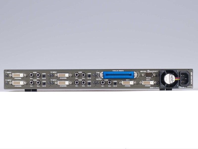 MIX-DV4は、最大4入力分の多機能アップダウンスキャンコンバータを実装可能な4対1完全シームレス切替スイッチャーで、かつ1つの画面上に4つの画面を任意レイアウト合成することが可能なマルチレイアウトビューア機器です。