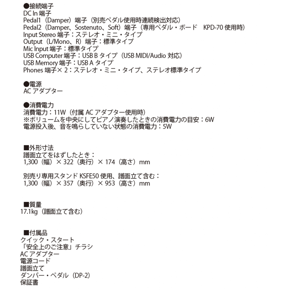 FP-E50-BK 簡易練習セット・セット内容 |