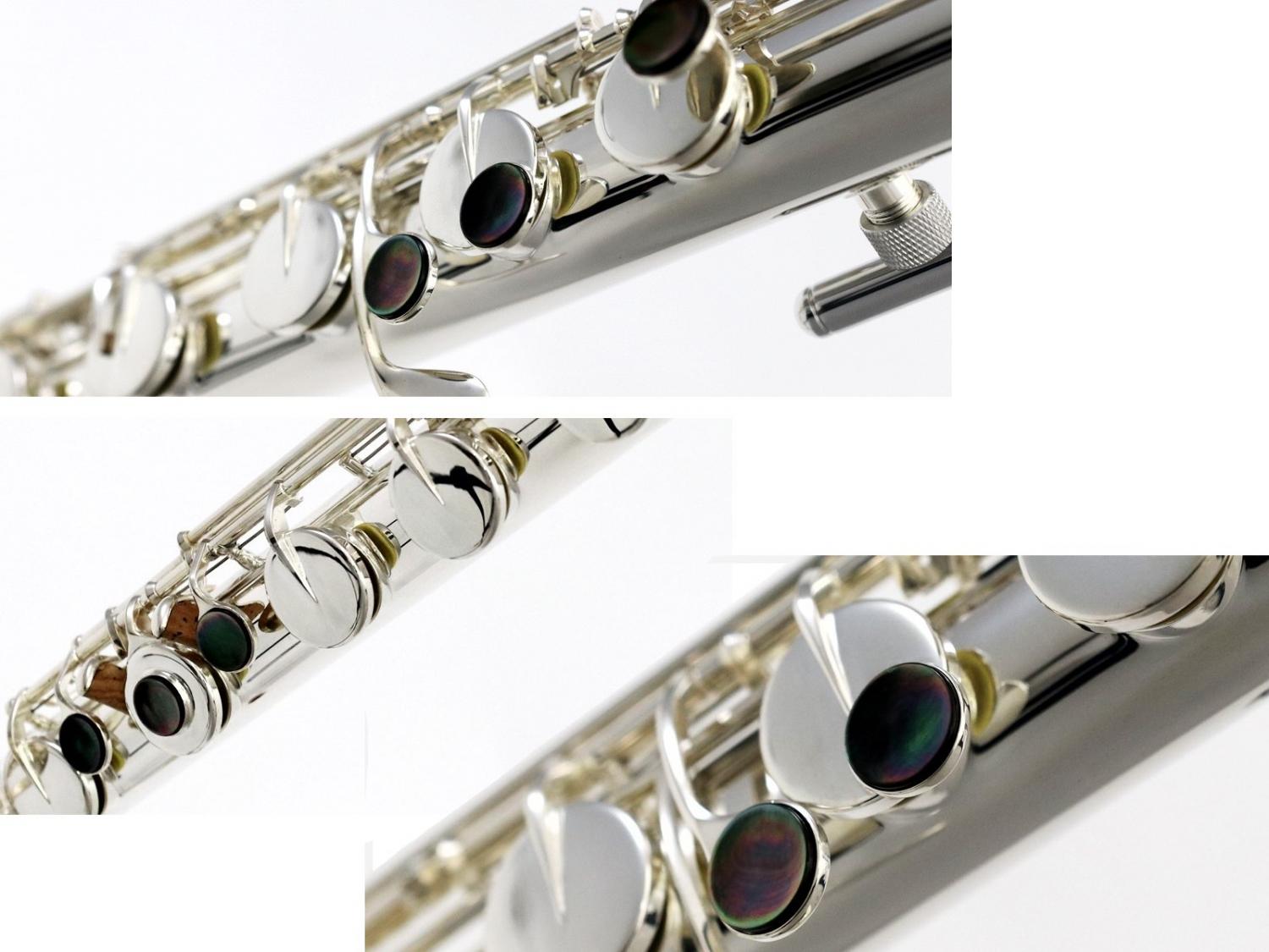 ▼他社製品との比較 ・ジュピター JBF1000…ニッケルシルバー製、銀メッキ仕上げ、C足部管、Eメカニズムなし ・ジュピター JBF1100E...縦型、キィ/管体素材=ニッケルシルバー製、リップ・ライザー=銀製、銀メッキ仕上げ、C足部管、Eメカニズム付き ・ヤマハ YFL-B441…キィ素材=洋銀、管体素材=ゴールドブラス、クリアラッカー仕上げ(キィのみ銀メッキ仕上げ)、C足部管、Eメカニズムなし ・アルタス BF823SE…キィ・管体素材=白銅製、リッププレート=銀製、銀メッキ仕上げ、C足部管、Eメカニズム付き 上記の通り、ヤマハでは一般的な銀メッキの製品はないため、高額となり日本製アルタスも当然ながら高額となります。ジュピターはそれに比べ比較的リーズナブル。縦バスを安くでと考えてる方には特におすすめです。ただパールと仕様が似ていますがEメカニズムがついていません。