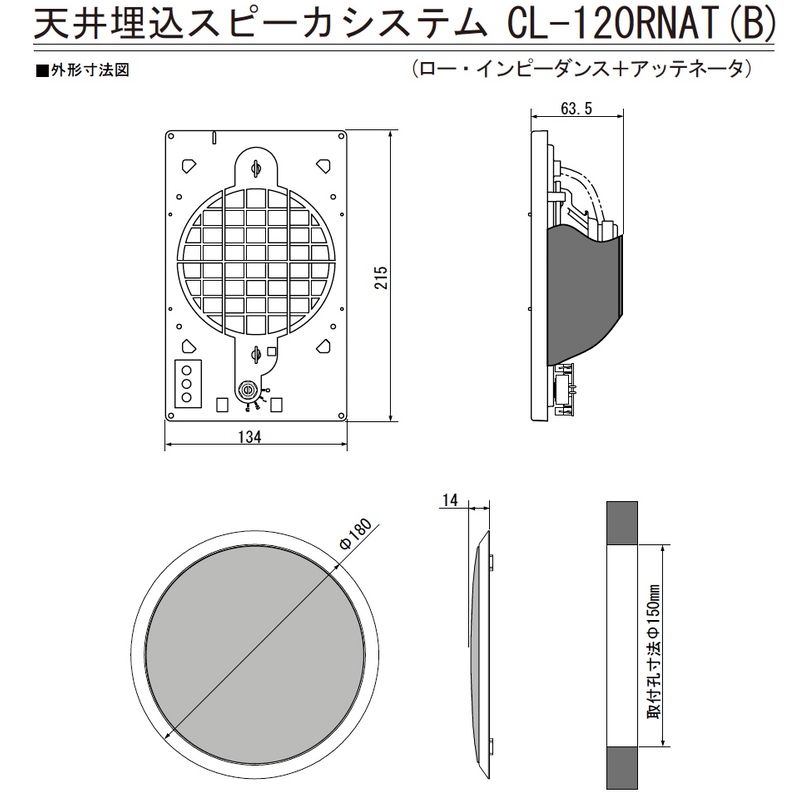 MASSIVE マッシブ CL-120RNAT (B) ブラック ◆ 天井埋込型スピーカー・シーリング型