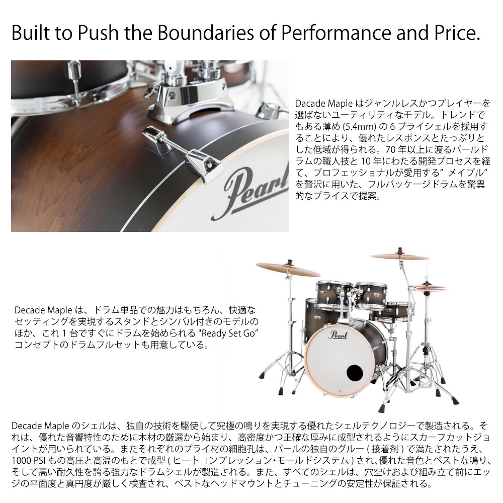 70年以上に渡るパールドラムの職人技と10年にわたる開発プロセスを経て、プロフェッショナルが愛用する”メイプル”を贅沢に用いた、フルパッケージドラムを驚異的なプライスで提案。