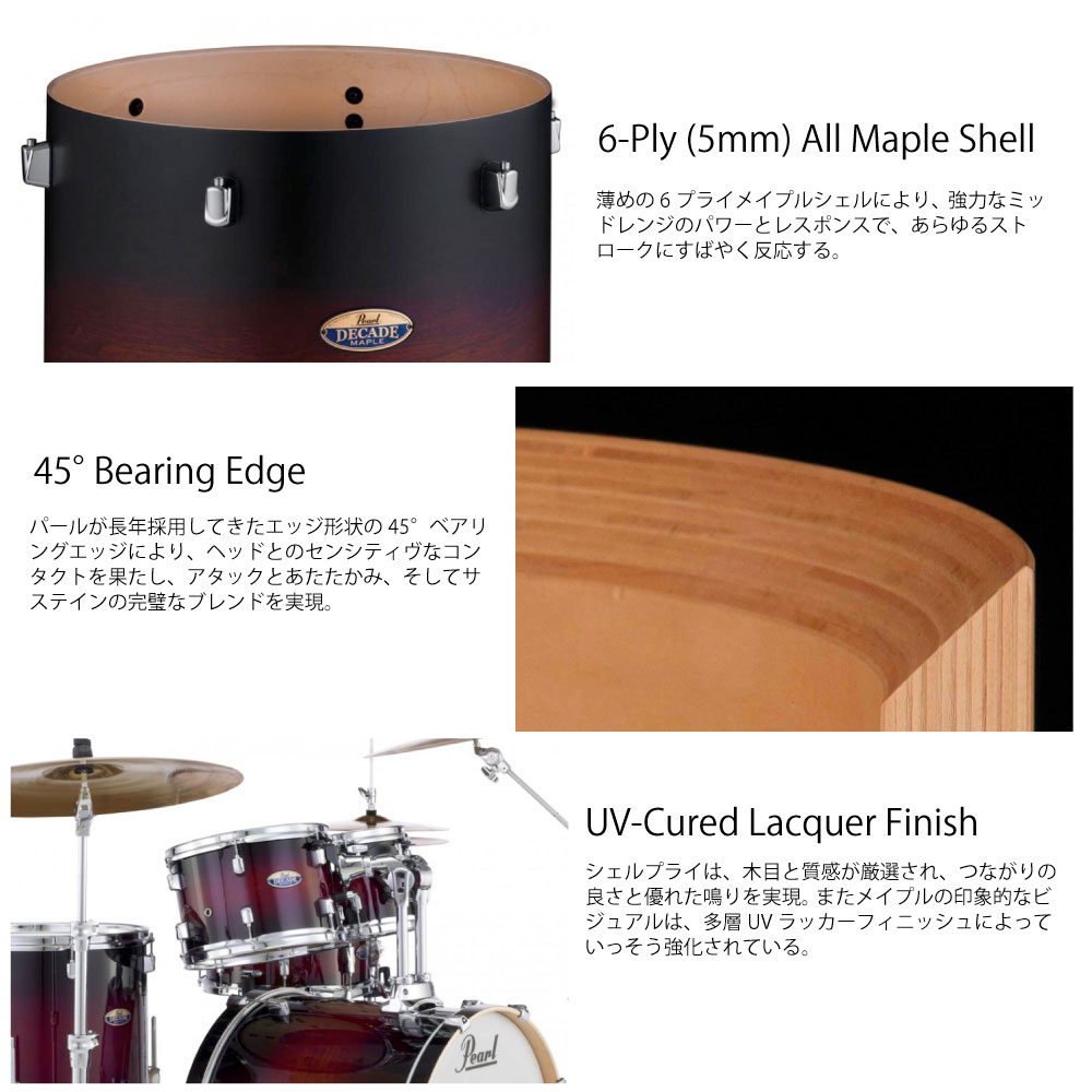 Decade Mapleシリーズは、オールメイプルシェルを採用し、いわゆるプロレベルのサウンドを実現。※こちらはシェルセットです。(詳しくはセット内容をご覧ください)