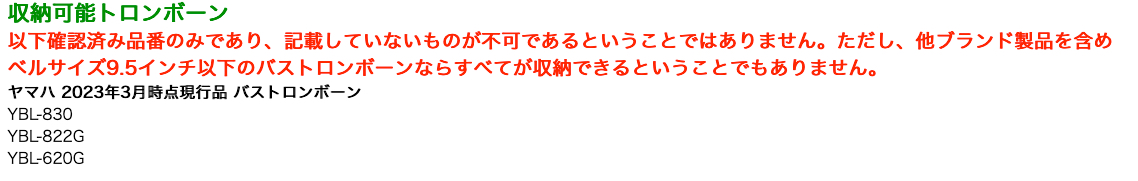 ベルサイズ9.5インチ以下のバストロンボーンならすべてが収納できるということでもありません。