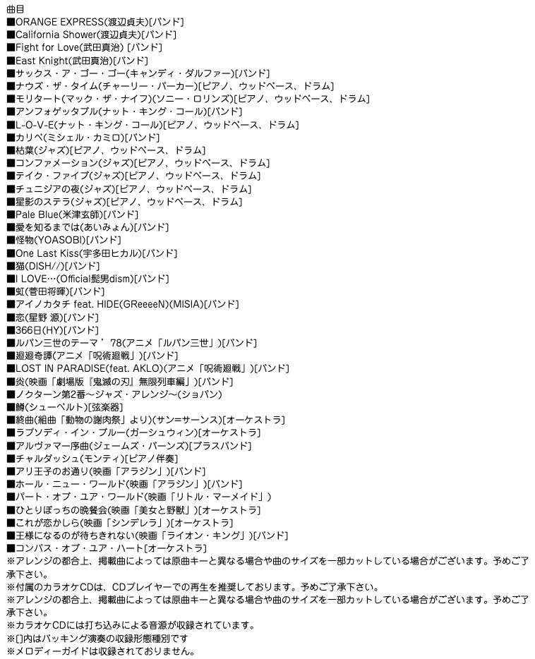 ※カラオケCDには打ち込みによる音源が収録されています。