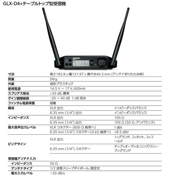 SHURE シュア GLXD4+ ◆ 2.4GHz帯 GLXD+シリーズ専用 テーブルトップ型受信機 GLXD4+J=-Z2GLXD4+ ◆ 2.4GHz帯 GLXD+シリーズ専用 テーブルトップ型受信機