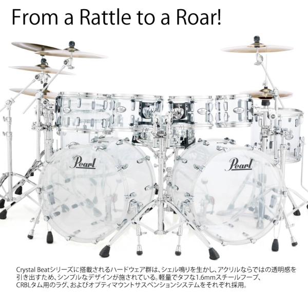 Crystal Beatは、潔いほどに倍音をカットしたアタックと鮮烈なルックスとのかつてないブレンドを果たし、革新的なシームレス構造シェルにより、過酷なライヴツアーにも耐えられる強力な"アクリル"ドラムシステムを完成させている。