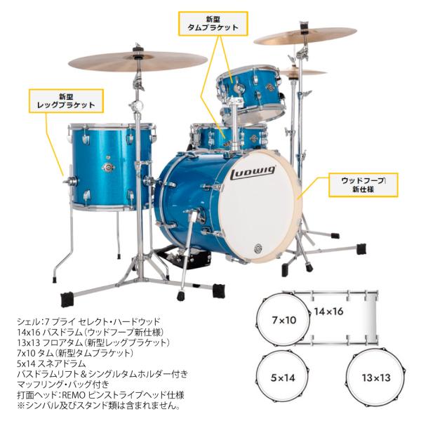 LUDWIG ラディック 即納可能 ブレイクビーツ LC2792 Blue Sparkle BREAK BEATS ドラムセット 小口径 持ち運び ストリート大人気のブレイクビーツがリニューアル!小口径ドラムセット BREAK BEATS!