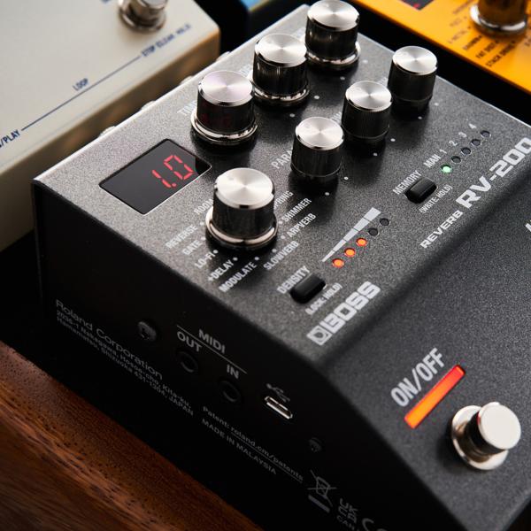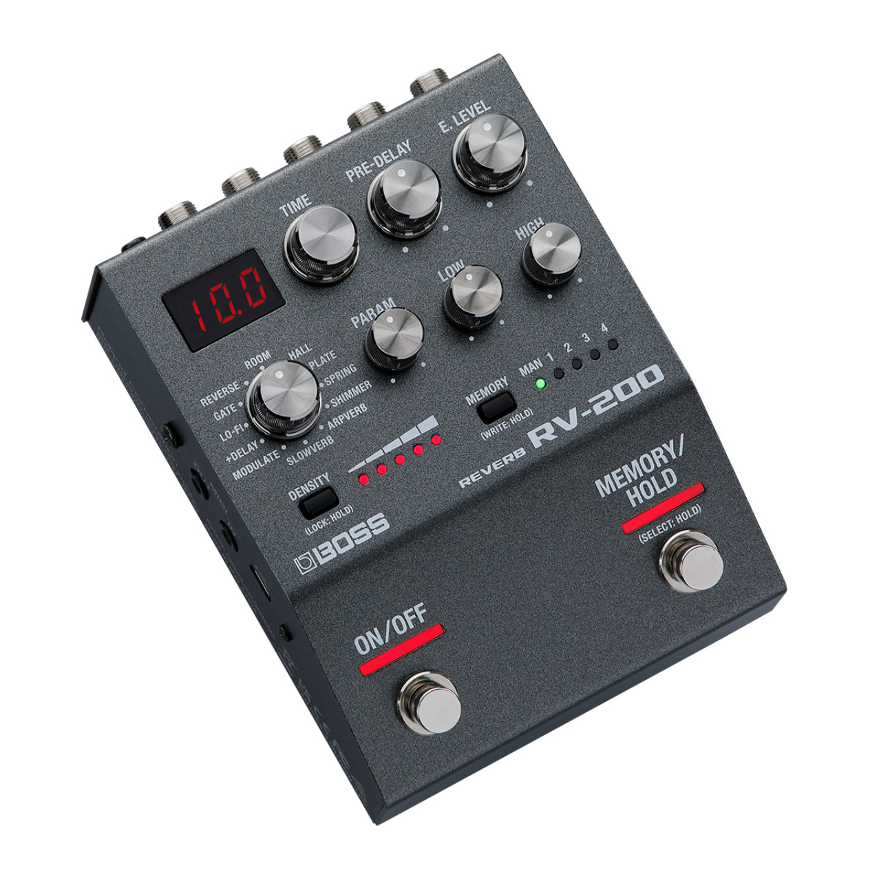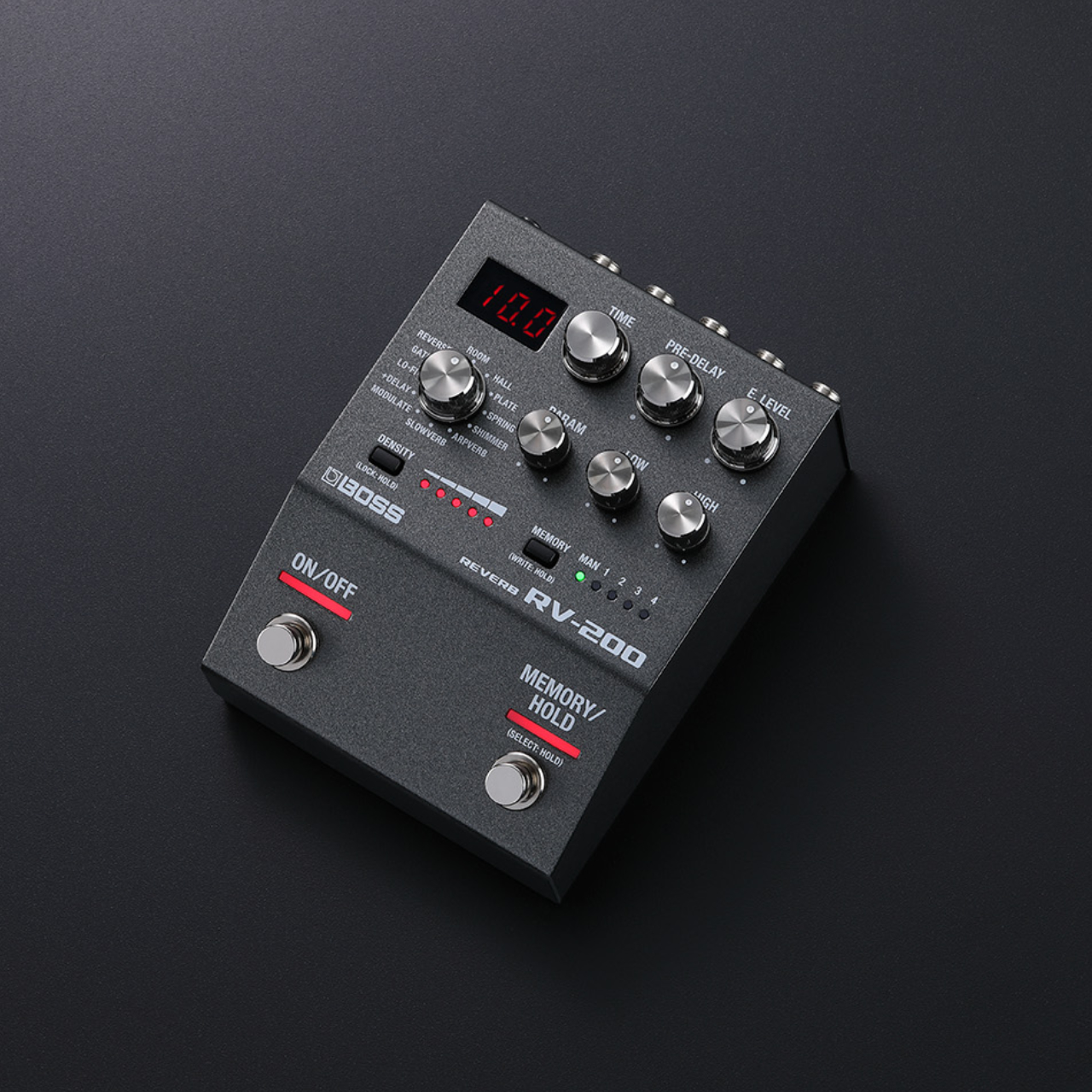 RV-200 は、洗練されたデザインに高音質を備えた BOSS 200 シリーズのリバーブ・ペダルです。