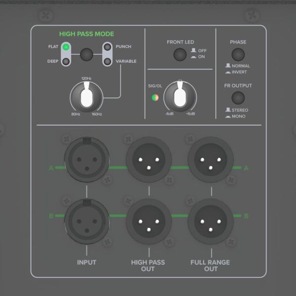 ◆ステレオXLR入力/ステレオハイパス+フルレンジ出力