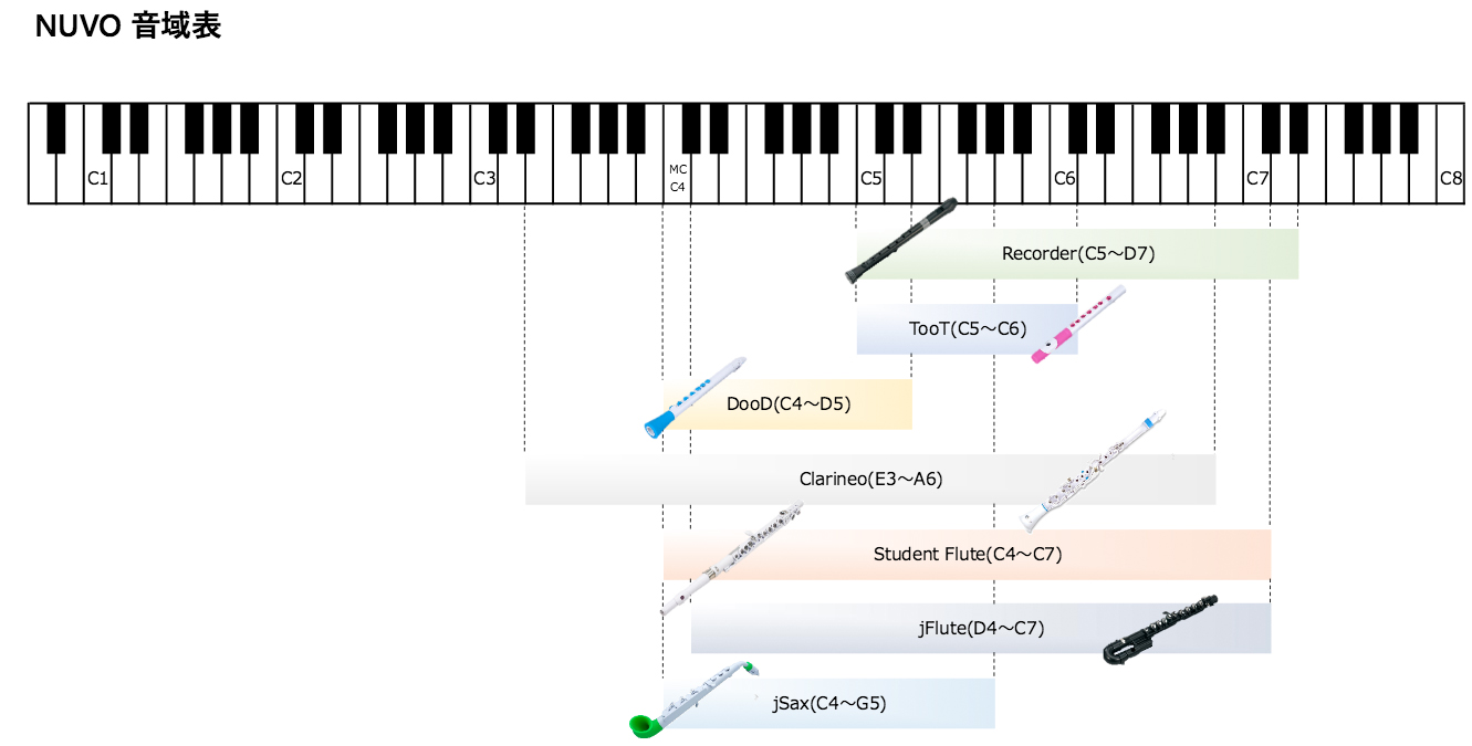 管楽器はピアノやリコーダーのように誰でも簡単に音を鳴らせるものではなく、簡単に鳴るように設計はされておりますがそれなりのコツが必要になると思います。そこが楽器の魅力であり、初心者にも是非手にとって頂きたいNUVOフルートなのです。