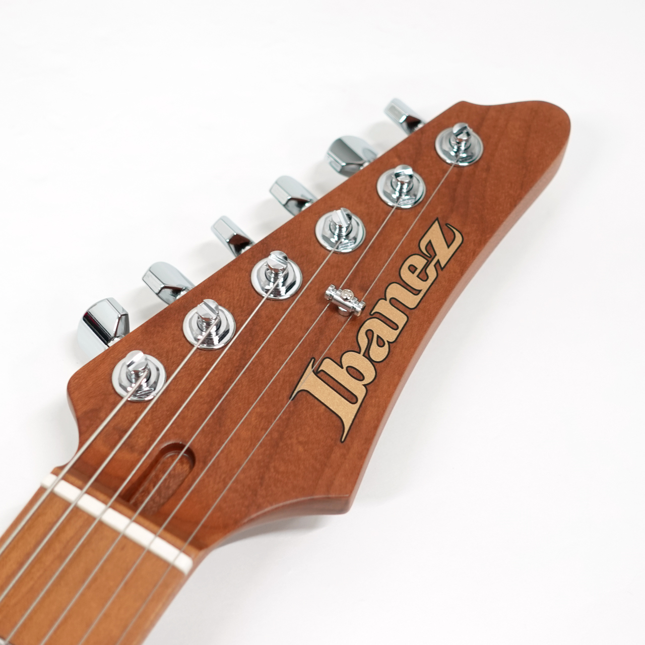 オリジナルのボディ形状を採用したアルダーボディ、エステック処理を施したローステッドメイプルネック&指板、ネック形状は従来のネックより少し厚く設計、弾きやすいオイルフィニッシュ仕上げにしています。Ibanezの薄ネックが苦手な方にも手に馴染むような適度な厚さです。
