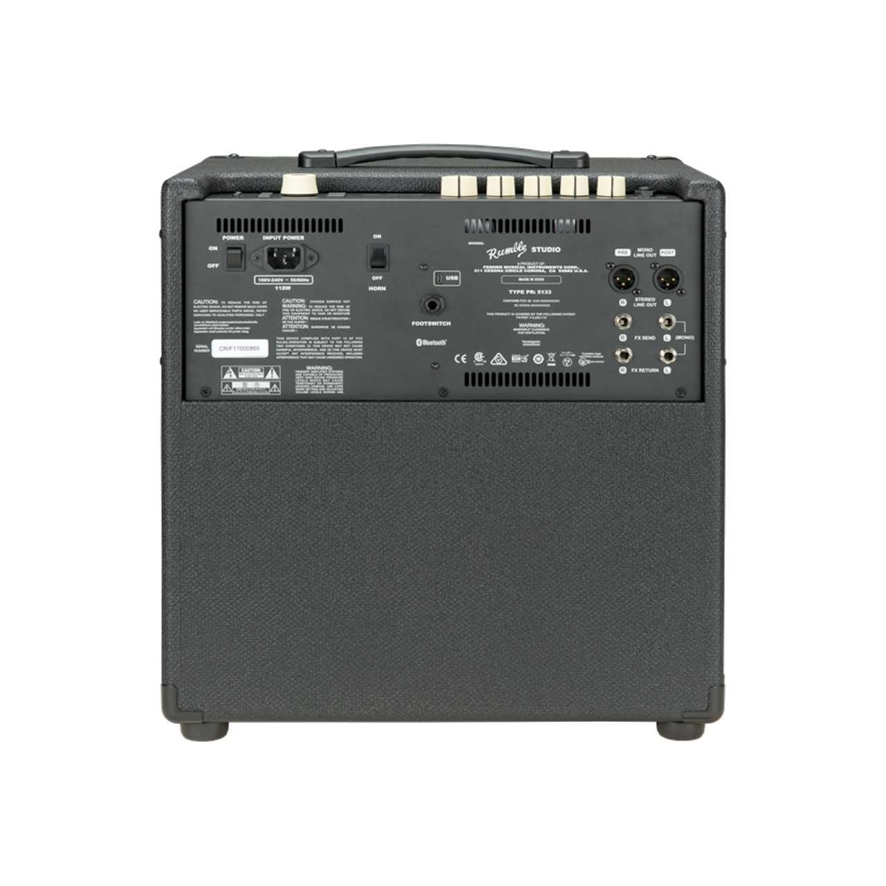 オクトボット等、多様な機能を備えたRumbleのサウンドメイキングの可能性は無限大です。 コンパクトなボディからは想像もつかないような高出力を誇るこのアンプは、10インチのウーファー、 オン/オフスイッチ付きのコンプレッションツイーター、ライブやスタジオの場で重宝するXLR端子のライン出力、 ソフトウェアのアップデートやクラウドの利用による新たなトーンの取得を可能にするWiFi機能、 レコーディングに便利なUSBオーディオ機能、 練習時に役立つBluetoothを介したオーディオストリーミング、Fender Toneアプリとの連携、 ヘッドフォン端子等、あらゆるニーズに応える様々な機能を備えています。