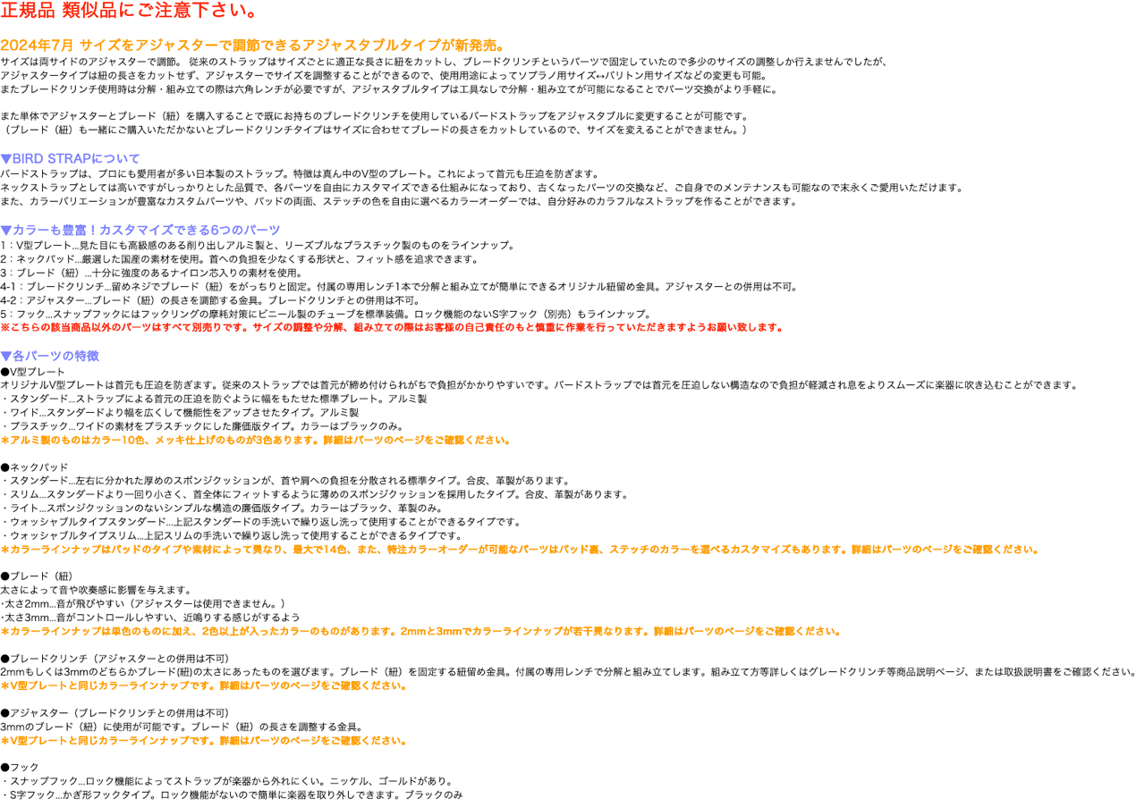 BIRD STRAP ADJUSTABLE Saxophone NECK STRAP バードストラップ・アジャスタブル サックスネックストラップ