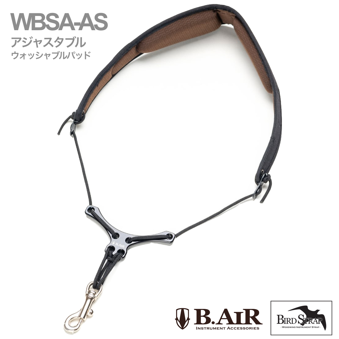 B.AIR ビーエアー バードストラップ アジャスタブル WBSA-AS サックス用 ウォッシャブル ネックストラップ ブラック BIRD STRAP standard saxophone 北海道 沖縄 離島不可