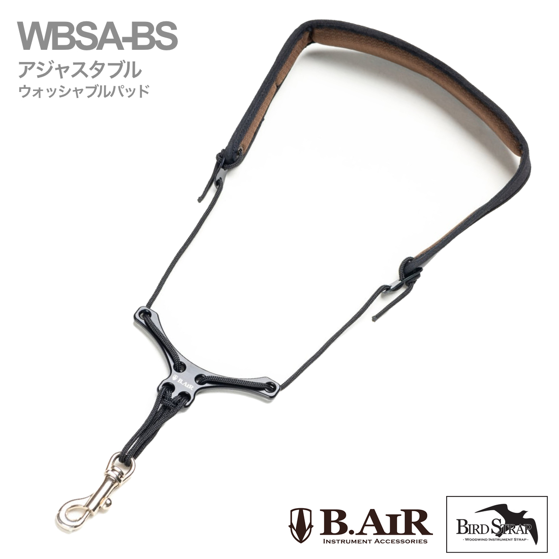 B.AIR ビーエアー バードストラップ アジャスタブル WBSA-BS サックス用 ウォッシャブル スリム ネックストラップ ブラック BIRD STRAP standard sax 北海道 沖縄 離島不可