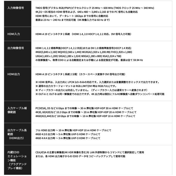 または、各 HDMI 出力端子からの EDID データをコピーバックアップして使用可能 |