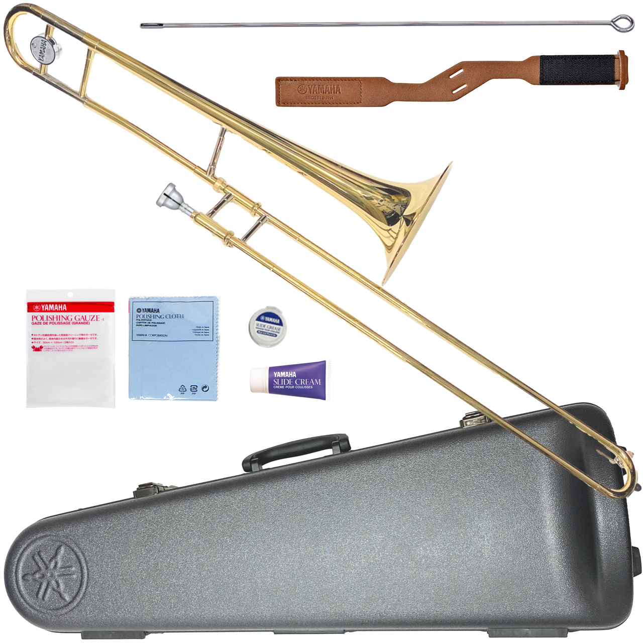 ヤマハトロンボーンの中でも一番安いシンプルなモデルです。これより安い、いわゆる低価格帯に属するテナートロンボーンは存在しますが 中国製につき品質が安定しておらず個体で精度にバラ付きが多いこともあります。ものによってはトロンボーンの生命線とも言われるスライドの動きが悪く動きにくいといったものもあることもあります。ヤマハにはそういったことがなく安定した品質です。安定した品質でなおかつその中でも安価なものをという方にはYSL-354がおすすめです。ヤマハのテナートロンボーンのラインナップの中では唯一の細管で楽器も軽いです。 体がまだそう大きくないお子様への導入として、また新たにトロンボーンを始める方にも良いと思います。吹奏楽などではテナーバスが多く使用されますが、ジャズなどでご使用をお考えでしたらこのレベルのテナーはおすすめです。