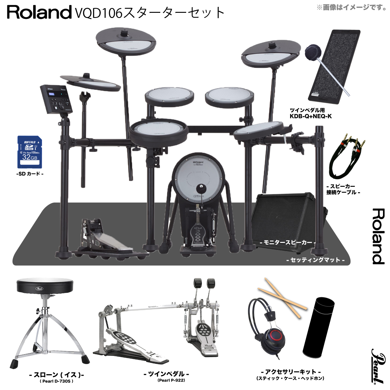 Roland ローランド 即納可能 VQD106 V-Drums Quiet Design Pearl ツインペダル アンプ付き スターターセット