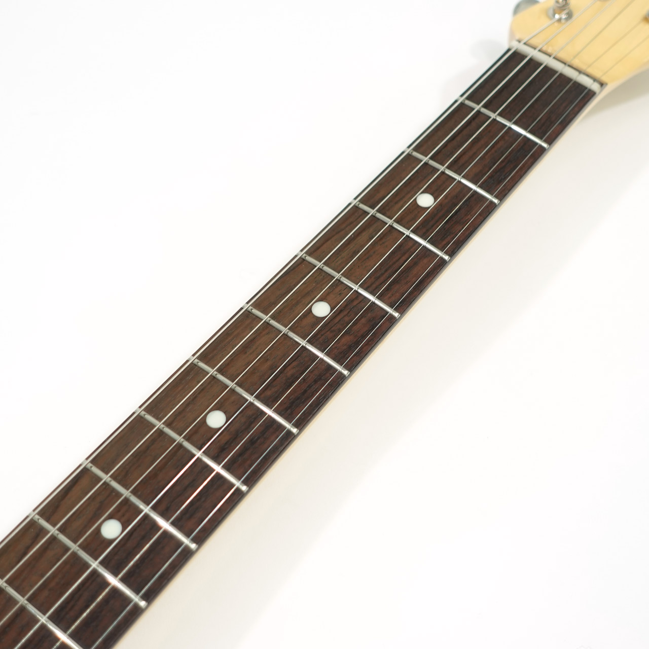 本機はUシェイプのメイプルネック、ローズウッドフィンガーボードといった60年代のテレキャスターのスタイルを持ちながら癖のないバスウッドボディを採用したモデル。