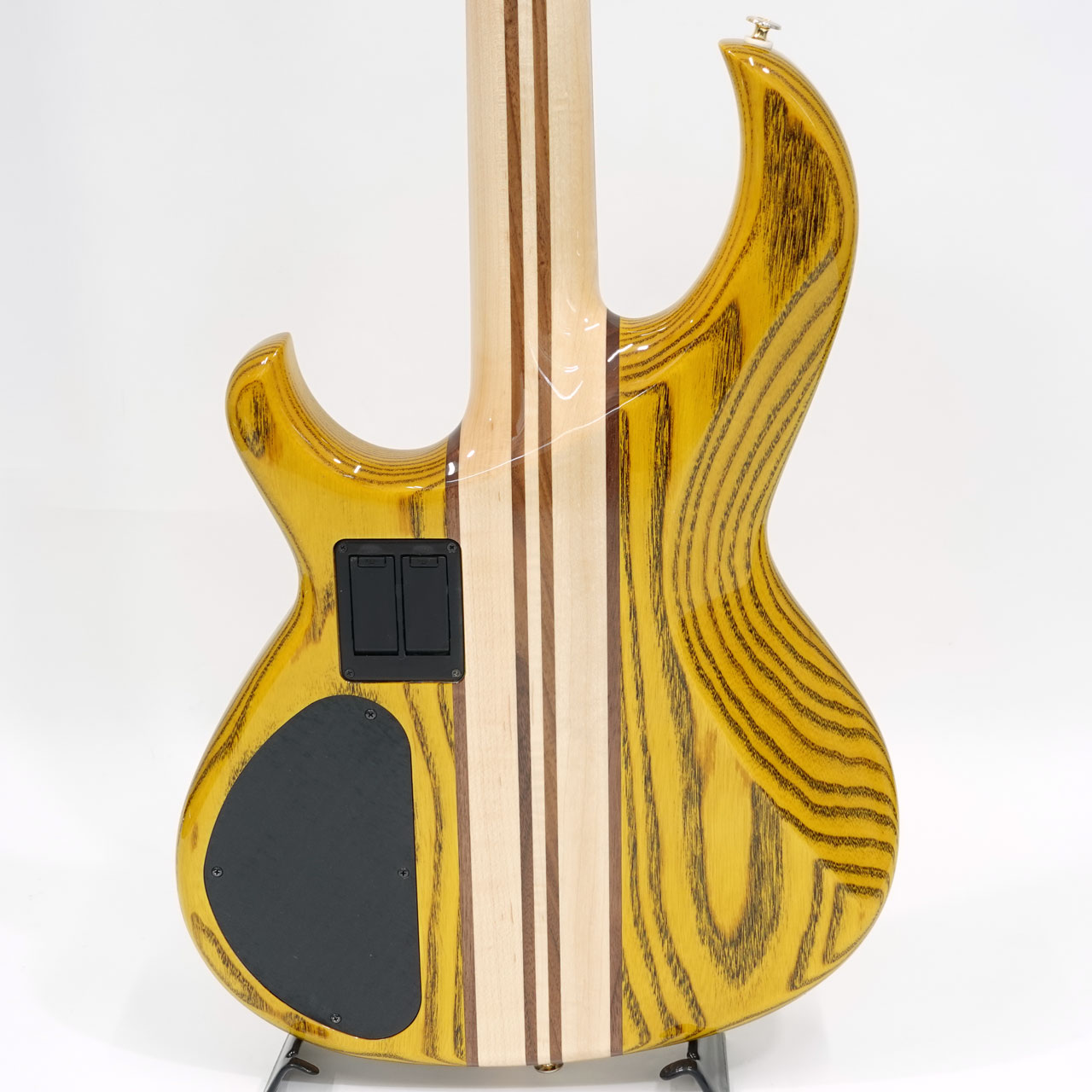 ボディはアッシュを採用し、SUPER BALANCED BODYはボディエンドからカッタウェイ側へ向かいボディ厚を薄くすることにより、完成されたボディバランスを獲得。ヘッド落ちを回避し、ボトムがより強調されたサウンドも特徴です。メイプル+ウォルナットのスルーネック、エボニー指板。なめらかなネックヒールの仕上げでハイフレットまでスムーズな演奏性を獲得しています。ミドルの音を引き立て音のエッジ感をカットした独特の音をもつPUとスーパーバランスドボディの組み合わせは新たなサウンドを生み出します。