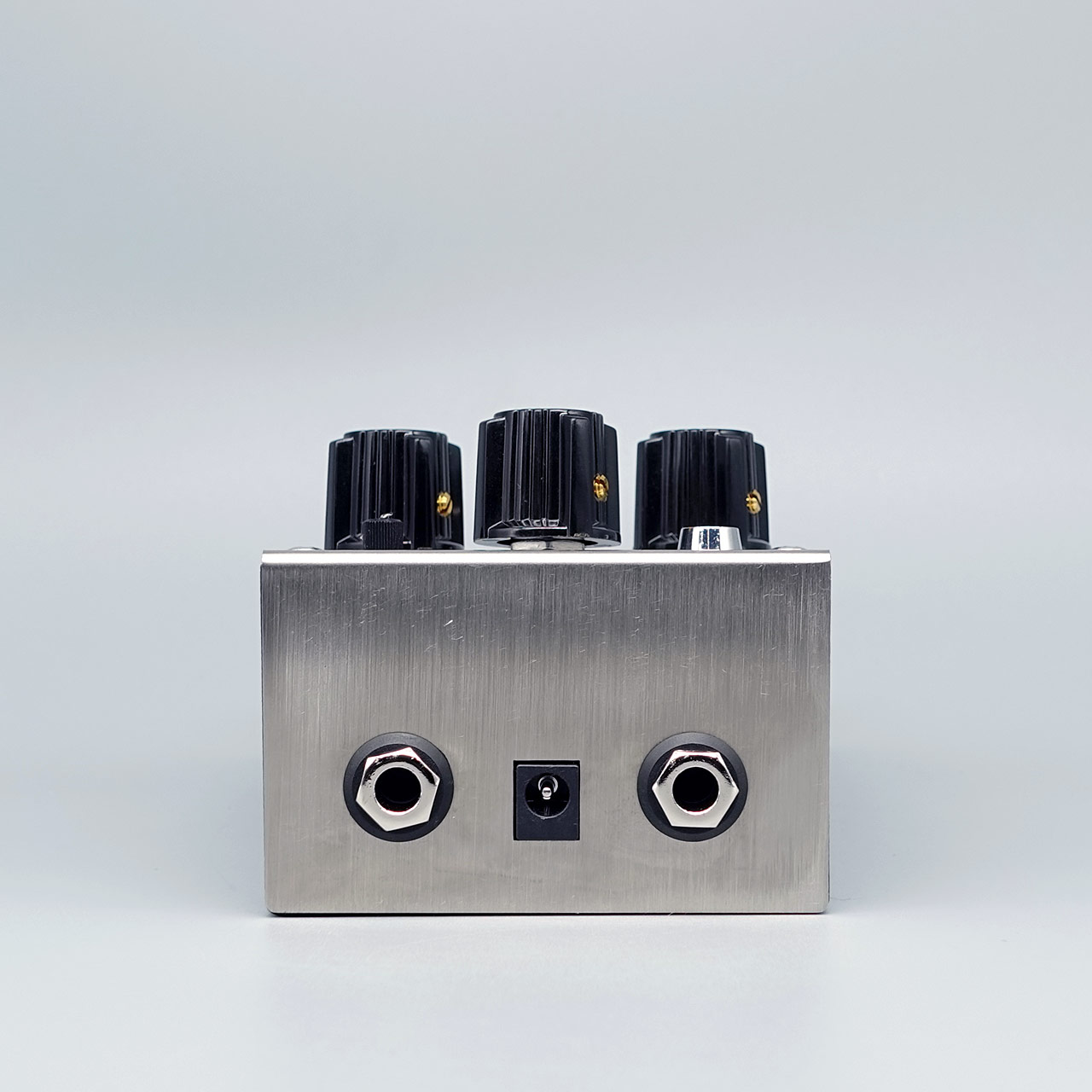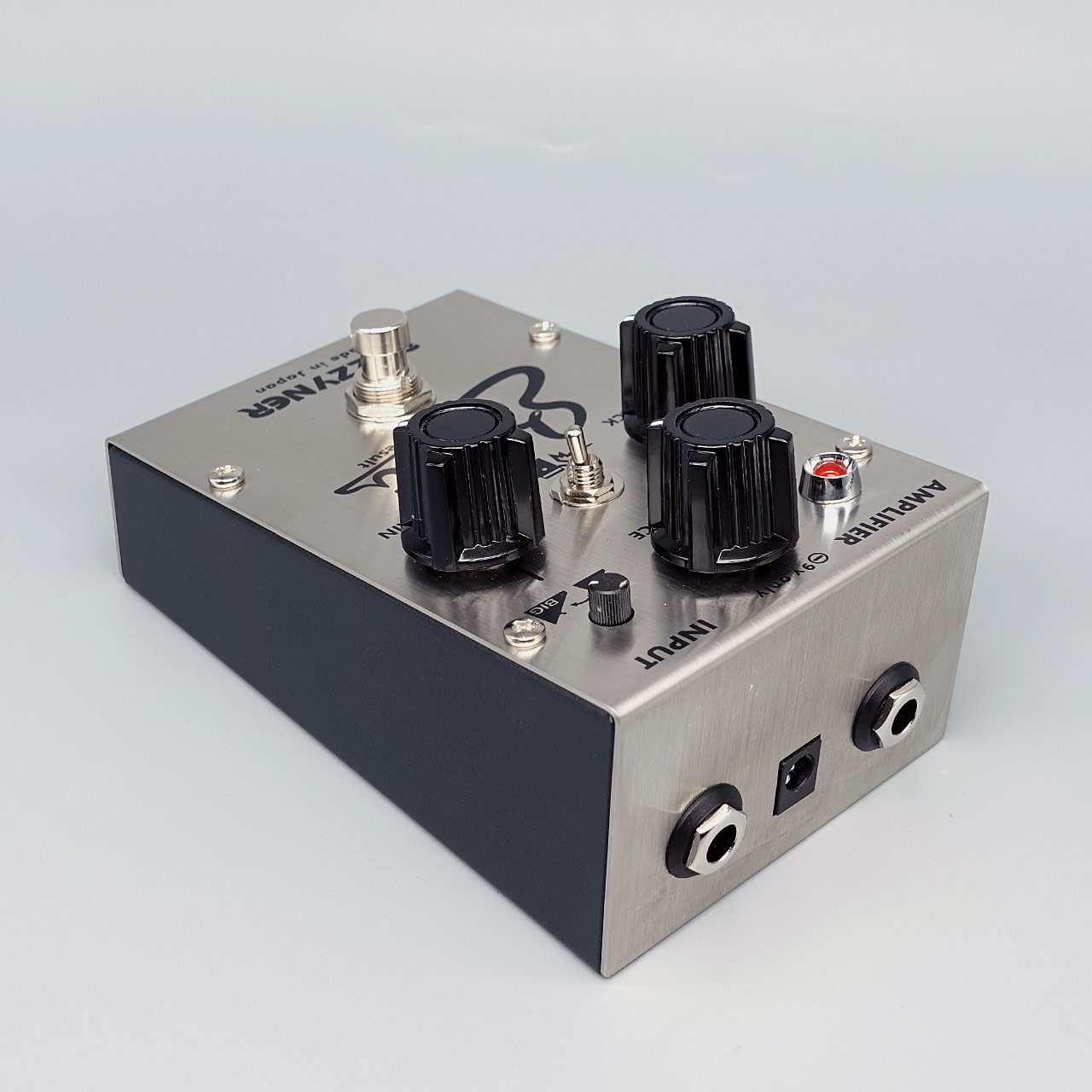 内部で負電源に変換する回路を導入しました。ゲルマニウムトランジスタでありながら一般的なペダルと同様のパワーサプライやDCアダプターからの電源供給が可能です。